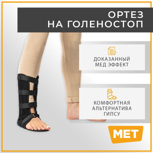 Ортез голеностопный фиксирующий на ногу MET серии GD033 жесткий ортез на голеностоп с металлическими ребрами (суппорт)