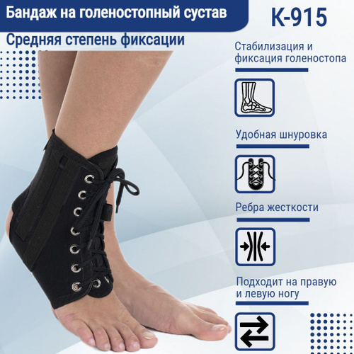 Бандаж на голеностоп ортопедический, фиксатор на голеностопный сустав, ортез ортопедический К 915