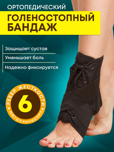 Ортез на голеностопный сустав с металлическими пластинами, бандаж на голеностоп фиксирующий с ребрами жесткости Lian Beauty Accessories