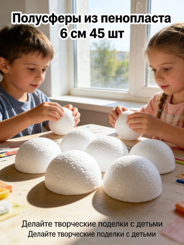 Набор пенопластовых полушарий 60 мм 45 штук для детского сада