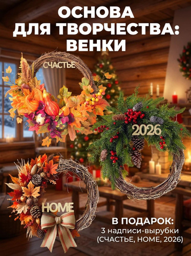 Набор основ для венка из лозы, 3 шт. для осеннего, новогоднего и праздничного декора