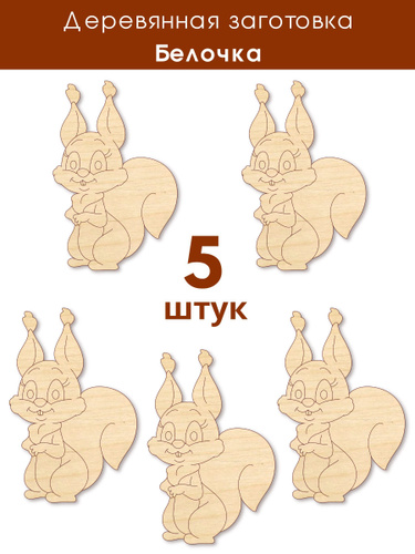 Деревянная заготовка для осенних поделок Белочка, набор 5 шт, Дюмарт