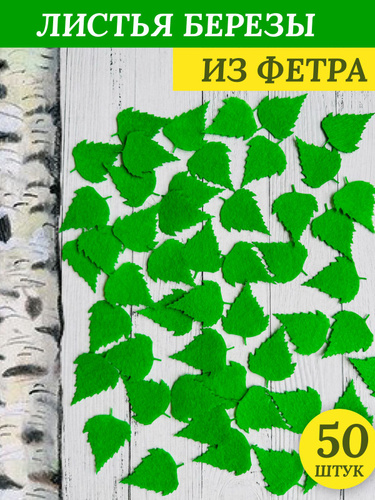 Зеленые листья березы из фетра комплект 50 штук