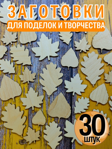 Деревянные заготовки для творчества Листья (30 штук)