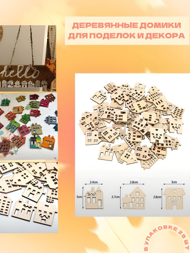 Деревянные заготовки для творчества и поделок. 25 шт. Маленькие домики. Домик для игр. Дом из дерева.