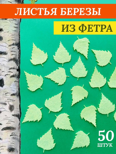 Листья березы из фетра комплект 50 штук