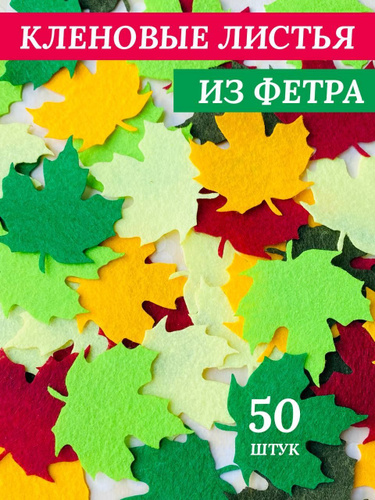 Кленовые листья из фетра разные цвета комплект 50 штук