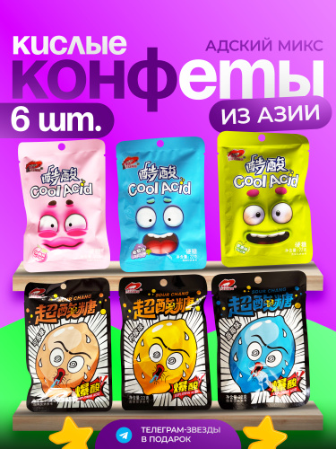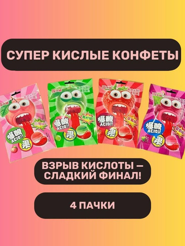 Супер кислые конфеты Sour Candy.Китайские конфеты.АССОРТИ 3 разных вкуса/рандомный.