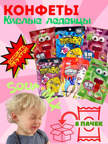 Супер кислые взрывные леденцы ассорти 8 штук Ассорти Китайские конфеты сладости