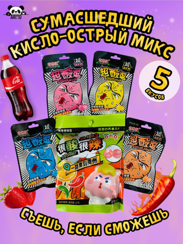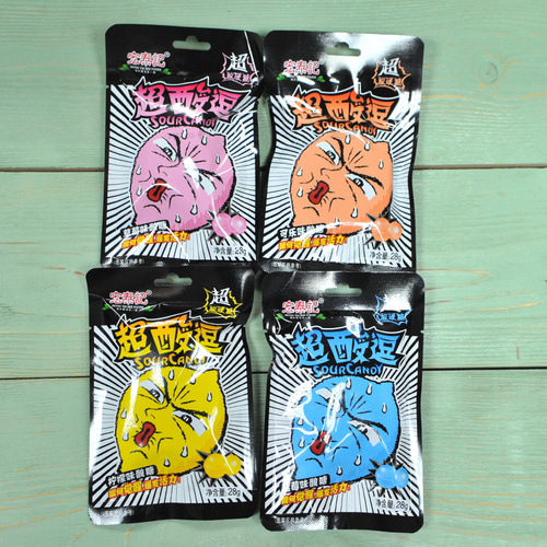 Супер кислые леденцы Sour Candy ассорти кола, черника, лимон, клубника, снек (набор 5шт) Китайские конфеты