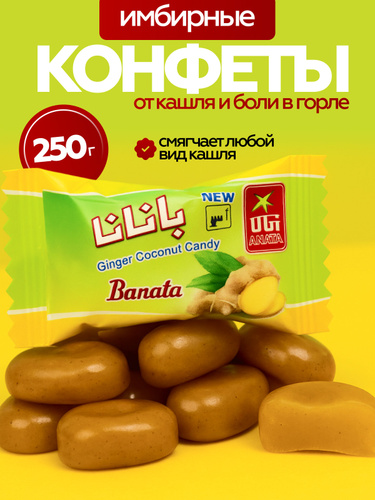 Конфеты от кашля и боли в горле натуральные имбирные, 250 гр. Banata / Леденцы острые противовирусные от простуды сосательные / Иранские сладости для укрепления иммунитета, набор 50 шт