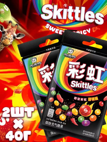 Драже Скитлс острые, конфеты Skittles spicy из Китая, 2 шт. по 40 г.