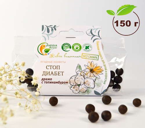 Конфеты без сахара для диабетиков ТОПИНАМБУР СТОП ДИАБЕТ Энергия жизни ягодные полезные конфеты, веганский продукт, сладости 150 г