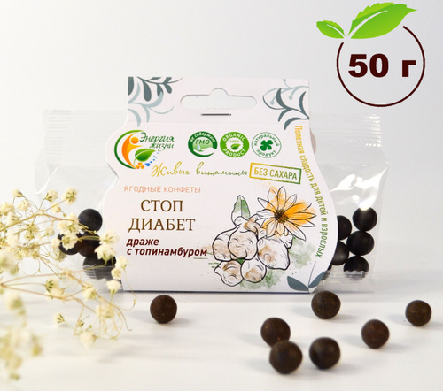 Конфеты без сахара для диабетиков ТОПИНАМБУР СТОП ДИАБЕТ Энергия жизни ягодные полезные конфеты, веганский продукт, сладости 50 г