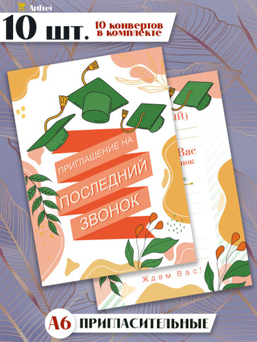 Пригласительные на последний звонок с крафт-конвертами. Комплект - 10 штук. Ретро