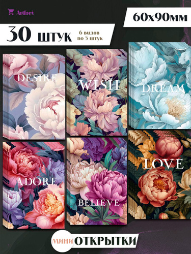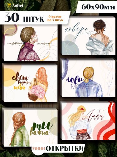 Мини открытки "Девушке" / 30 штук / набор 6 видов по 5 шт