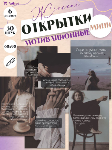 Мини открытки для Девушки с цитатами / 30 штук / набор 6 видов по 5 шт