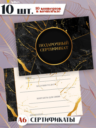 Сертификат подарочный А6 Мрамор, 10 шт с конвертами