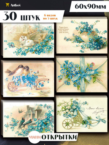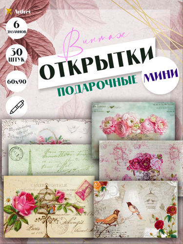 Мини открытки "Винтаж Ретро" / 30 штук / набор 6 видов по 5 шт