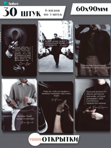 Открытка мини "Для Мужчины" / 30 штук / набор 6 видов по 5 шт