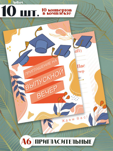 Пригласительные на выпускной + конверты. 10 штук. Ретро