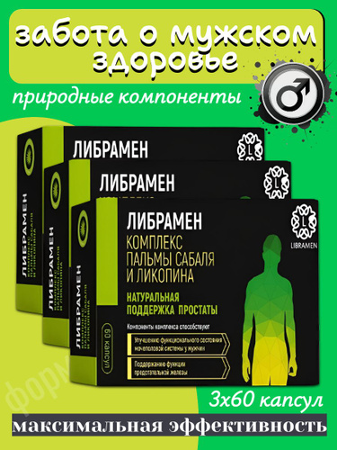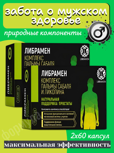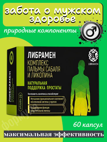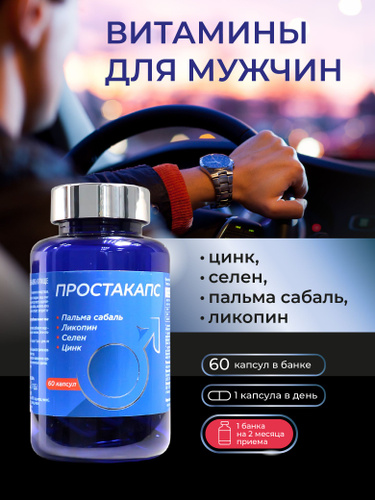 Витамины для мужчин от простатита для потенции с экстракт пальмы сабаль, Se и Zn, 60 капсул