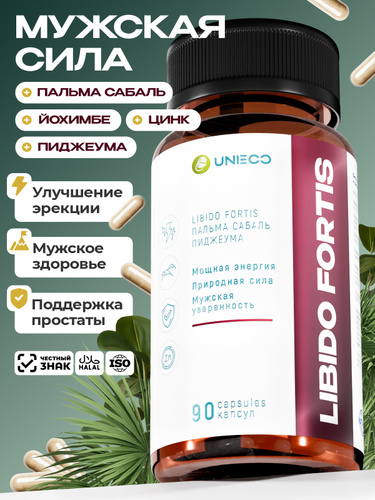 UNIECO Либидо Фортис с экстрактом пальмы сабаль saw palmetto, для повышения либидо и потенции, 90 капсул