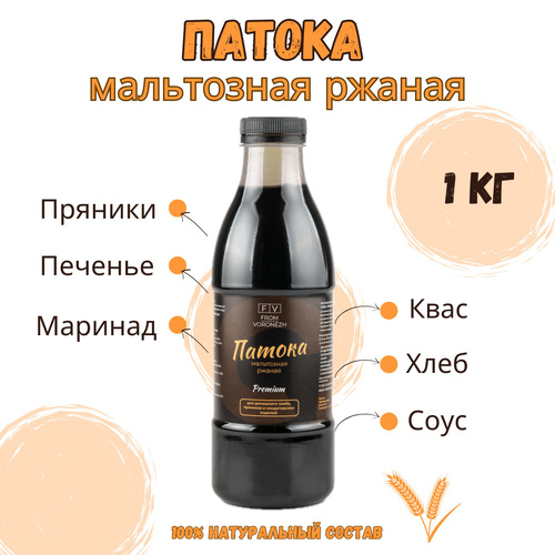 Патока мальтозная ржаная 1 кг для хлеба,кваса, пряников, печенья, соусов,маринадов FROMVORONEG