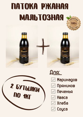 Патока мальтозная ржаная. Набор 2 бутылки по 1 кг для хлеба,кваса, пряников, печенья, соусов,маринадов FROM VORONEZH