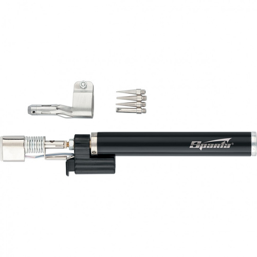 Горелка газовая, тип "Карандаш" c пьезоподжигом, 4 насадки для пайки, 200 мм