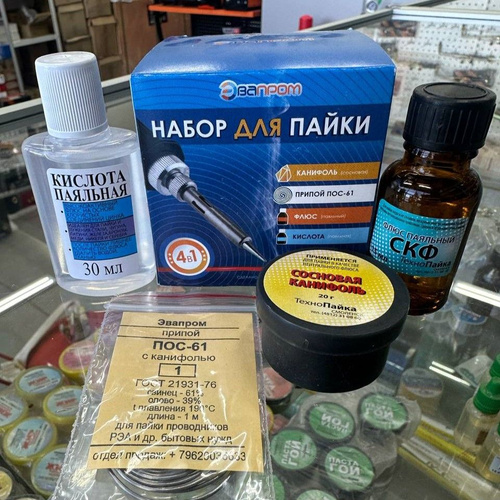 Набор для пайки паяльником электрическим: канифоль, припой, флюс, кислота, ТехноПайка