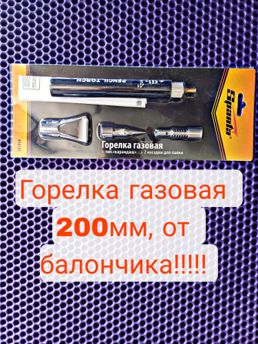 Горелка газовая, тип "Карандаш", 2 насадки для пайки, 130 мм