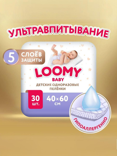 Детские одноразовые пеленки Loomy Baby, 60 х 40 см, 30 шт