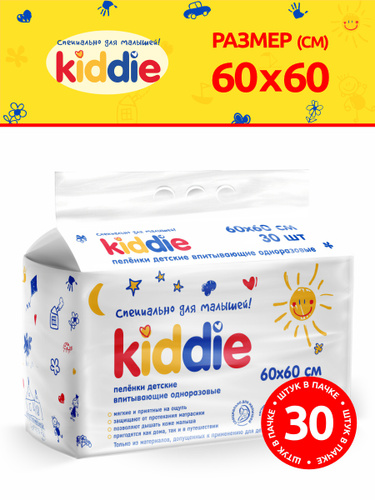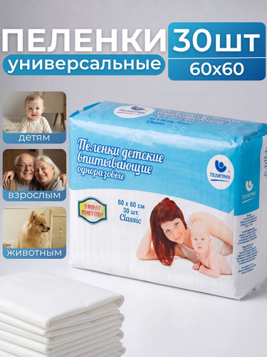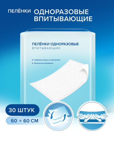 Пеленки одноразовые впитывающие, 60*60см, 30 шт