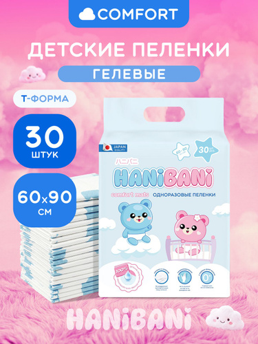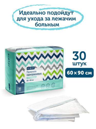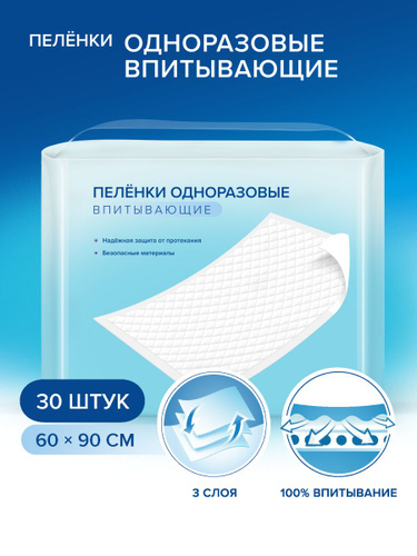Пеленки одноразовые впитывающие, 90*60 см, 30 шт