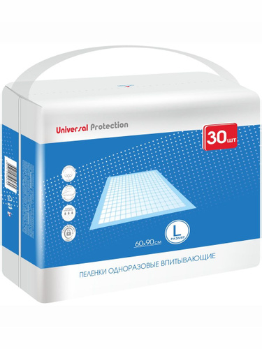 Пелёнки 60х90 см 30 шт одноразовые впитывающие Universal Protection (Универсальные) / голубые
