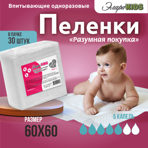 ЭлараKIDS Пеленка одноразовая 60 x 60 см 3 слоя 30шт.