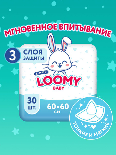 Пеленки одноразовые впитывающие Loomy Baby Simply, 90x60 см, 30 шт
