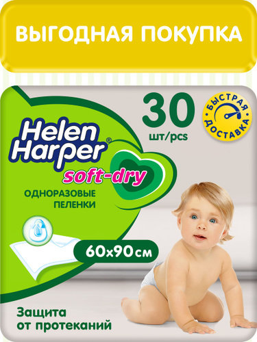 Пеленки детские одноразовые Helen Harper Soft&Dry 60*90, 30 шт.