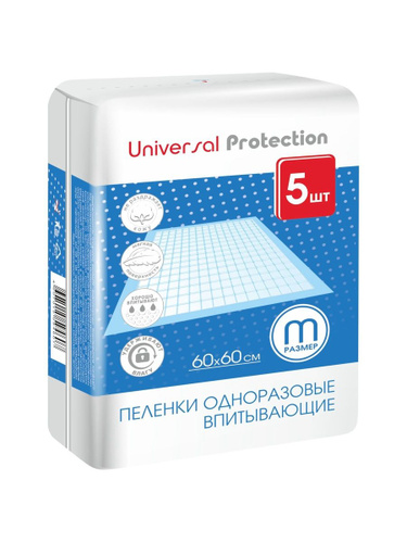 Пелёнки 60х60 см 5 шт одноразовые впитывающие Universal Protection (Универсальные) / голубые