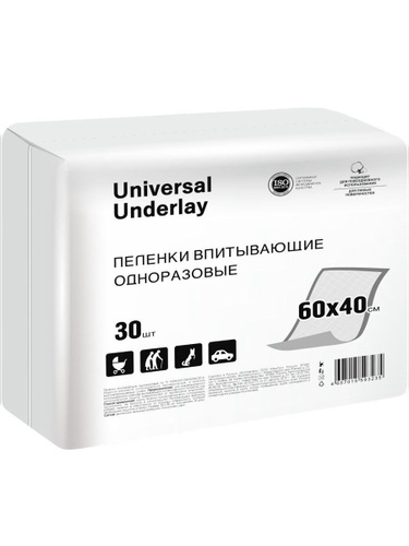 Пелёнки 60х40 см 30 шт одноразовые впитывающие Universal Underlay (Универсальные) / голубые