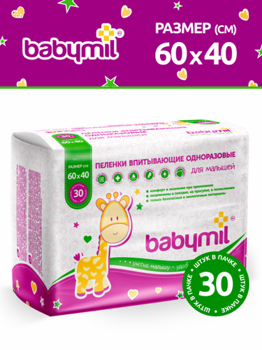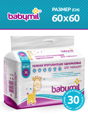 BabyMil Пеленки впитывающие одноразовые для малышей 60*60 см.(упаковка 30 штук)