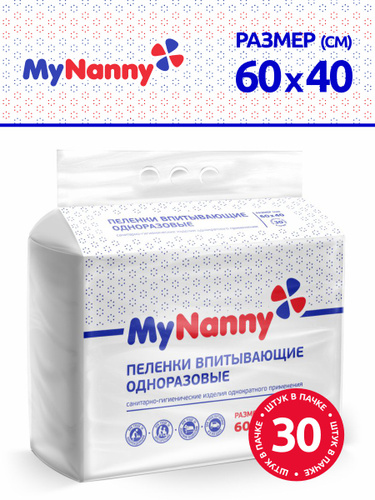 MyNanny Пеленки впитывающие одноразовые "Medmil" Эконом 60х40 см. (упаковка 30 штук)