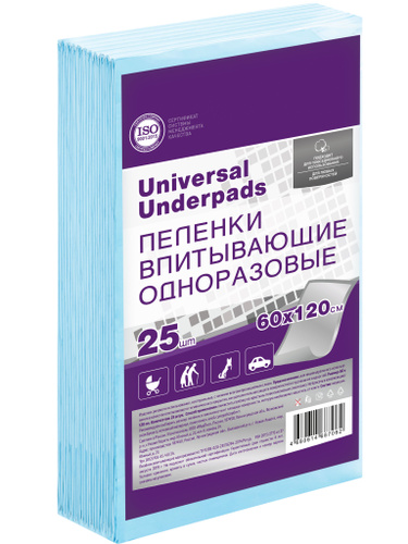 Пелёнки 60х120 см 25 шт с суперабсорбентом одноразовые впитывающие Universal Protection (Универсальные) / голубые