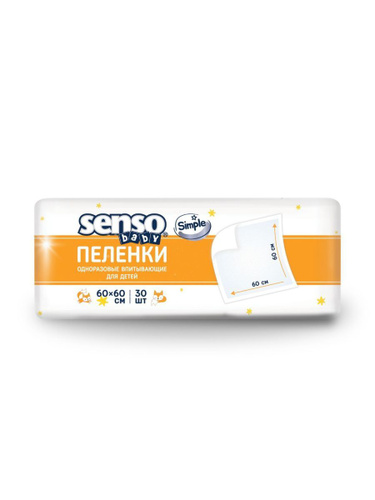 Впитывающие одноразовые пеленки Senso Baby Simple 60x90 30шт