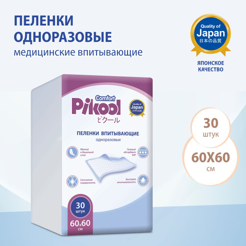 Пеленки одноразовые впитывающие Pikool, 60х90 см 30 шт.
