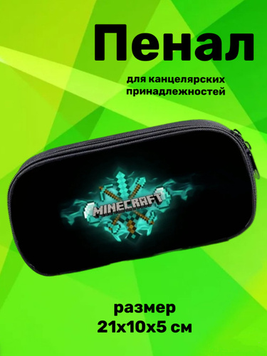 Пенал Minecraft черный с надписью размер 21х10х5 см