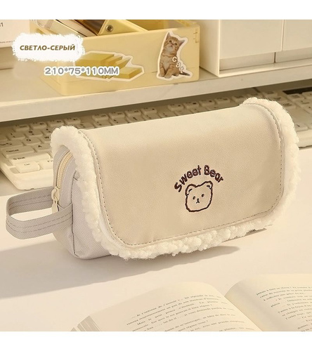 милый розовый пенал с кроликом, большая вместительная канцелярская сумка