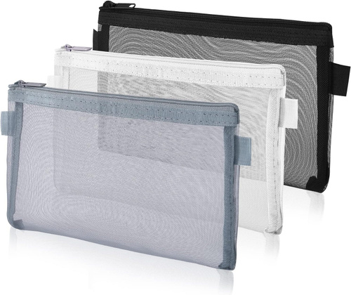 3 прозрачных органайзера с сеткой на молнии Пенал для канцелярии и косметички (Черный, Белый, Серый)