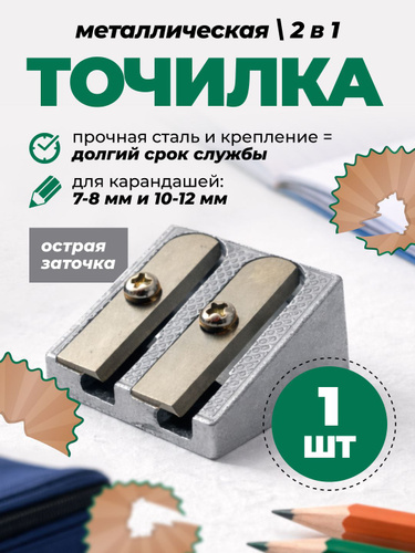 Точилка металлическая двойная для карандашей 7-12 мм, 1 шт., универсальная